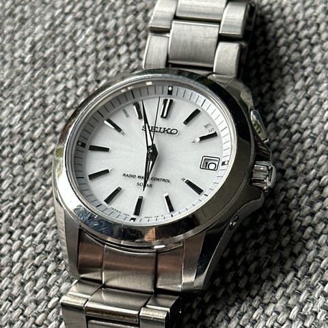 Seiko Solar Radio Controlled – Elegant stålklokke m/ boks (som ny)