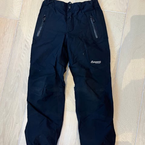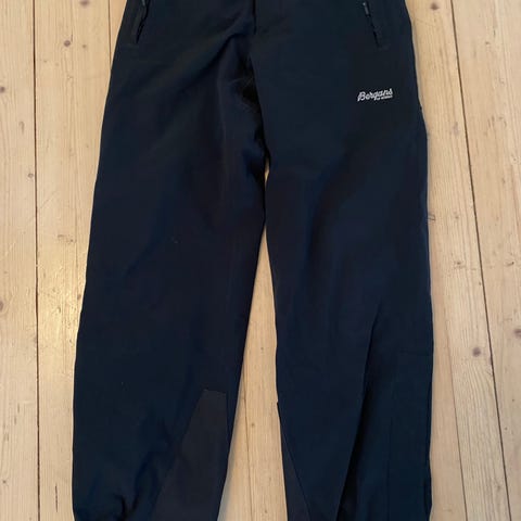 Bergans bukse for barn i størrelse 152. Unisexmodell i svart polyamid. Vanntett/vindtett. Buksen har glidelåslommer foran og beltehemper i livet. Egnet som fritids- eller turbukse for barn i aktuell størrelse.