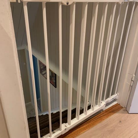 Hvit sikkerhetsgrind til trapp