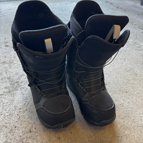 Burton Mint snowboardstøvler for dame i størrelse 39 (EU). Størrelseslapp viser 7,5–8,5 US, 5,5–6,5 UK, 24,5–25,5 MP og 245–255 CN. Støvlene er svarte med tradisjonelt snøresystem og innersko med snøring for ekstra støtte. Passer til bruk i alpinanlegg og frikjøring med kompatible snowboardbindinger.