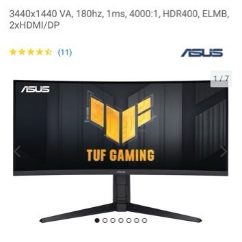 Asus TUF Gaming skjerm med 32 tommers skjermstørrelse. Skjermen har buet panel og er egnet som dataskjerm til generell bruk og gaming. Bak siden finnes VESA-feste for montering på skjermarm eller veggfeste. Tilkoblinger og øvrige spesifikasjoner kan variere med modell og bør kontrolleres mot serienummer eller brukermanual.