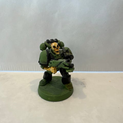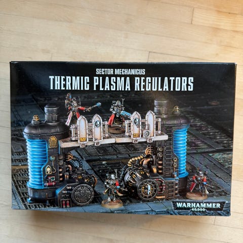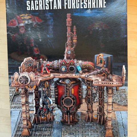 Warhammer 40,000 bastion terrengmodell i plast, malt i grå/beige toner. Modellen forestiller en befestet bygning med flere etasjer, skyteskår og dører, samt en kanon/plattform på toppen. Egner seg som terreng til bordspill i Warhammer 40,000 eller andre miniatyrspill i tilsvarende skala. Kan brukes som dekning, objektiv eller sentral bygning på spillbrettet.