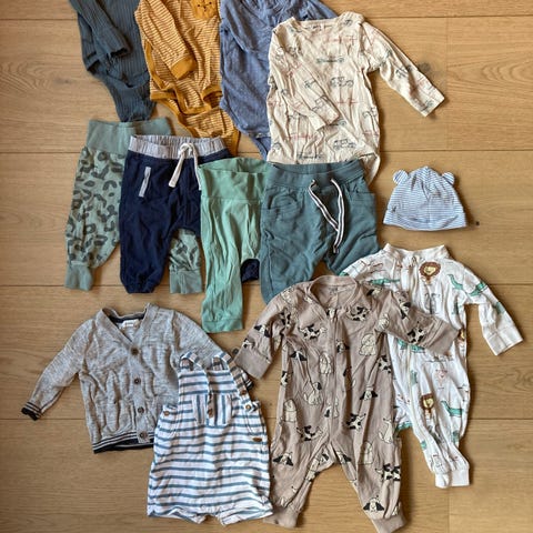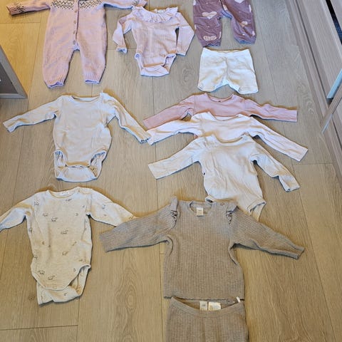 Merker som Newbie, Name it, Carters, Zara, Joha og Hm. Kommer fra dyrefritt og røykfritt hjem. Kan ikke se noen merker eller skader på klærne. Pent brukt.