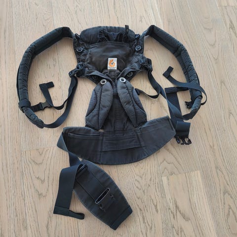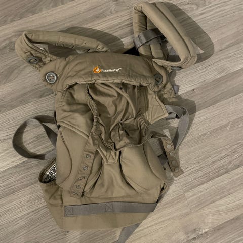 Ergobaby bæresele i grått stoff. Bæreselen har polstrede skulderstropper og bred, justerbar hoftebelte med borrelås og spenne for god støtte. Flere justeringsmuligheter gjør at selen kan tilpasses bruker og barn. Designet for ergonomisk bæring med støtte for barnets rygg, hofter og hode. Kan brukes til bæring både foran og på ryggen, avhengig av behov og barnets størrelse og utvikling. Samt at barnet kan sitte både vendt mot og fra brukeren.