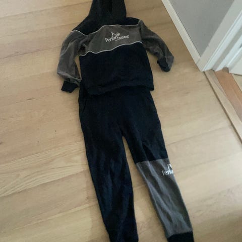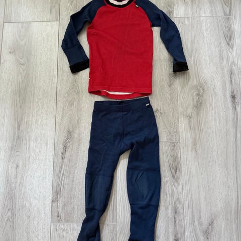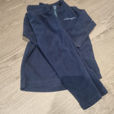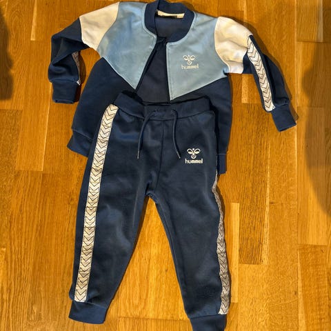Hummelsett med langermet genser og bukse i størrelse 86. Sett i to farger, blå og beige, med elastisk linning i buksen og ribbekanter. Passer til hverdagsbruk eller lek inne og ute☀️