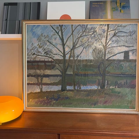 Jacob Isaackz kunstner landskapsmaleri med elv i gullramme