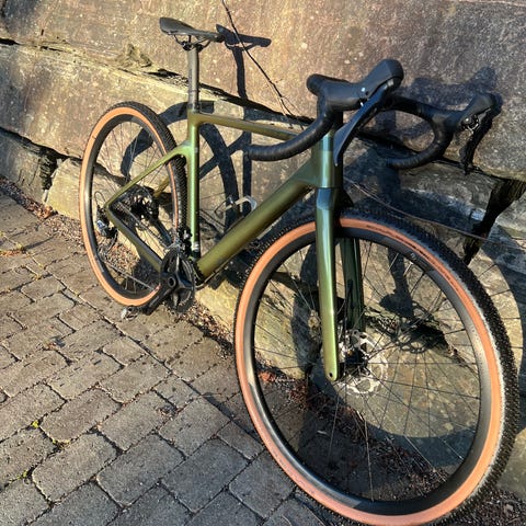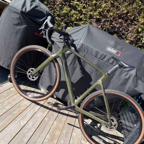 En sesong gammel Cube Nuroad Ex 2025 (str M) med aluminiumsramme. Sykkelen har Shimano GRX 1x12 gruppesett, og 45 mm