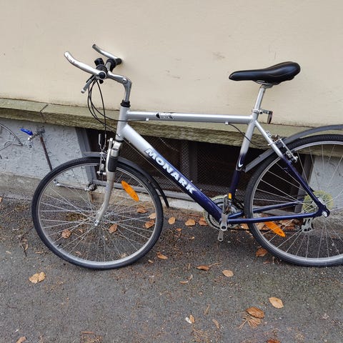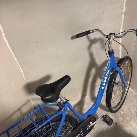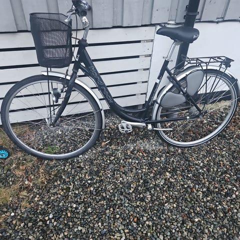 Sykkelen er noe slitt, med rust ved noen stenger, men ikke på kjedet. Beskytter mot søl er knekt foran (se bilde). Forhjulet er punktert. Girsystem, bremser og sykkelen ellers fungerer som den skal.