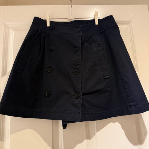 Selger dette mørke blå miniskjørtet fra See by Chloe i maritim stil. Reparert knapp, se eget bilde.