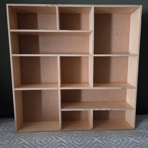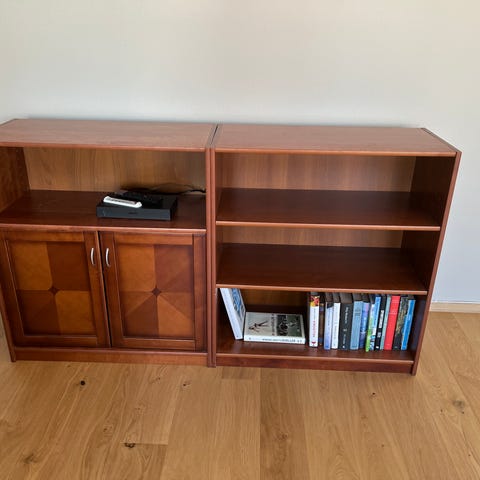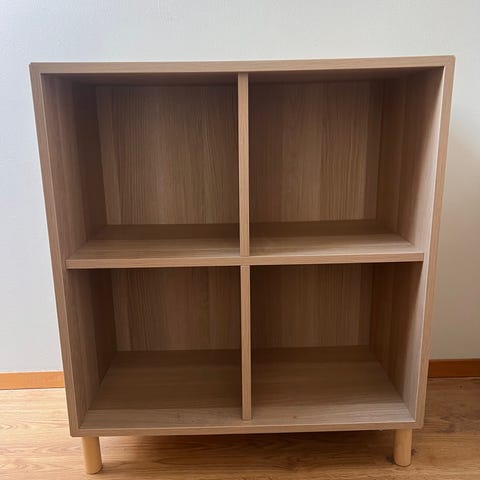 Kan brukes til bøker, oppbevaring eller dekor. Klar til bruk.