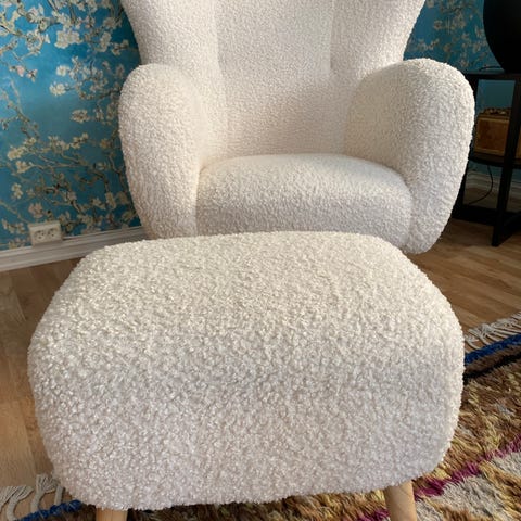 Verdens beste stol + puff selges (med stor sorg) grunnet plassmangel. Stolen er svært lite brukt og har mest stått til pynt, da vi egentlig ikke hadde plass til den.