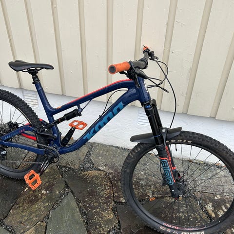 Selger en råtøff fulldempet terrengsykkel fra Kona i en skikkelig fresh oransje farge. Dette er en solid sykkel som passer perfekt til både stisykling og røffere terreng, men fungerer også fint til vanlig bruk.
