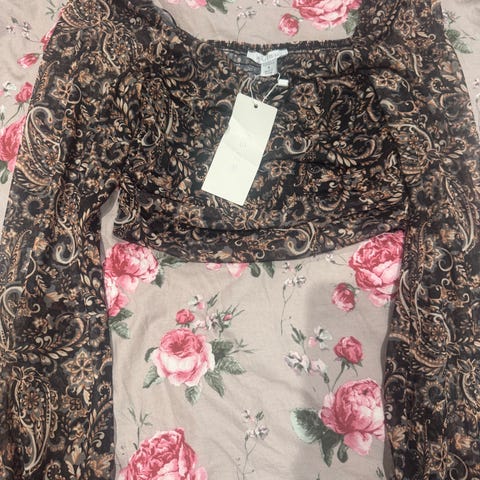 Amisu topp S – boho mønster med blondekant
