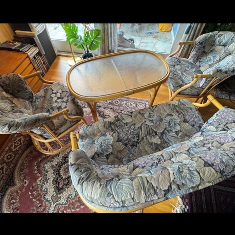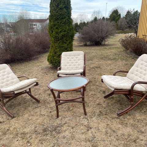 Selger utgått modell bambus møbler fra ikea + bird fra jysk med glassplate som jeg tror er gått ut av produksjon. Veldig ettertraktet sett som det er få av. 3 stoler, 1 sofa og 1 bord.