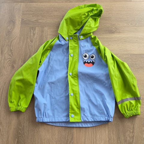 Solid regntøy fra Kappahl. Buksen er ikke slitt utenom at strikk må skiftes. Og jakken er ikke mye slitt utenom et merke på halsen.