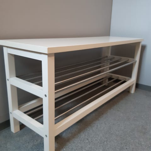 Entrébenk med skoplass, hvit, 108x34x50 cm. Rommer ca. 8 par sko.