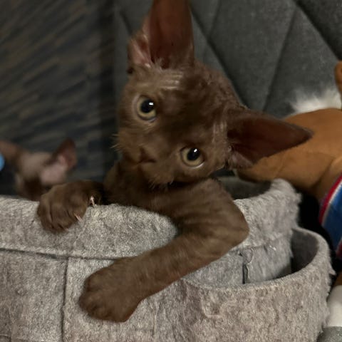 Han er en utrolig sjarmerende gutt med en herlig personlighet. Han er både kosete og leken, men samtidig rolig og behagelig – ikke overaktiv slik noen Sphynx-kattunger kan være. Dette gjør ham til en svært trivelig og balansert katt å ha i hjemmet.