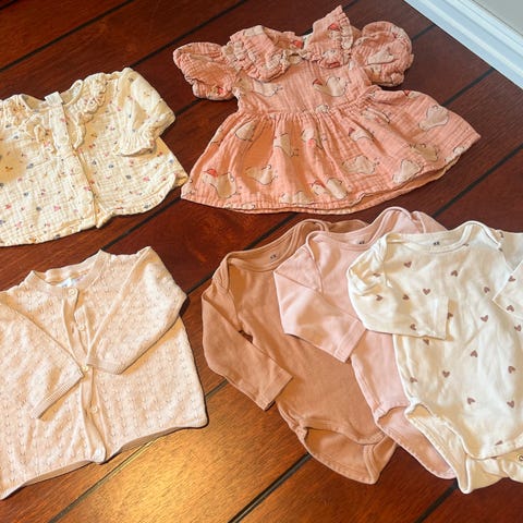 Tre myke singlet bodyer i ribbede stoff i størrelse 62 - to i lys rosa og én i hvitt. Pent brukt, fine til sommerdagene eller som underlag til lekre antrekk.