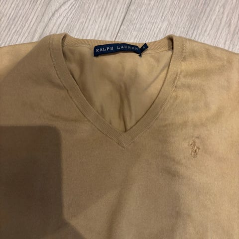 Selger en nesten ny (brukt 1 gang) genser i merket Ralph Lauren i beige kabelstrikket/ribbestrikket i størrelse small. Passer til hverdagsbruk og kan kombineres med både bukser og skjørt.