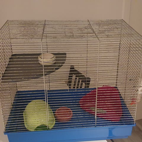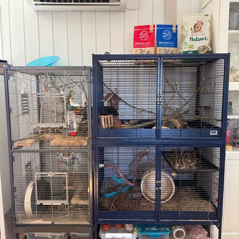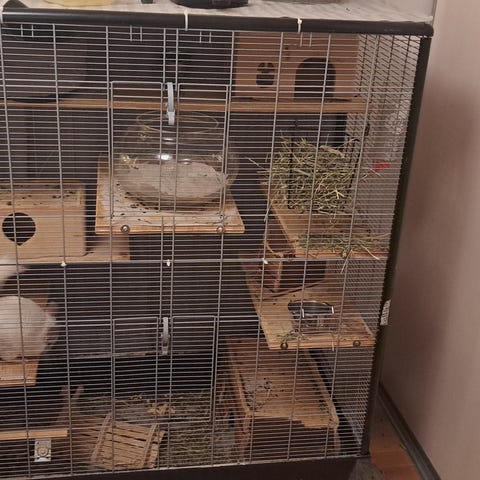 Modulært nettingsystem som kan brukes som bur til smådyr eller som åpen hylleløsning. Består av kvadratiske nettingplater i svart metall som kobles sammen med plastkoblinger. Systemet kan bygges om og tilpasses i høyde og bredde etter behov, for eksempel som innhegning til kanin eller smådyr, eller som reol til bøker og oppbevaring. Leveres som løse moduler som settes sammen til ønsket form.🌸🐾
