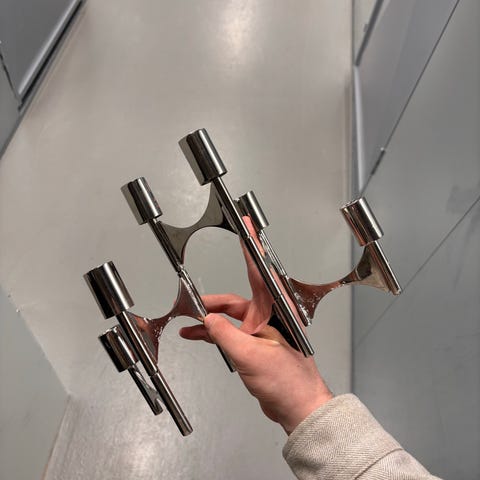 &Tradition lysestaker og skål i metall i sølvfarge.