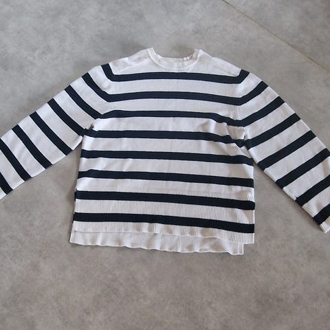 Bik Bok genser for dame i størrelse S. Genseren er hvit og laget i polyester. Den har strukturert materiale, lange ermer og rund hals. Passer til hverdagsbruk og kan kombineres med både bukser og skjørt. KUN BETALNG VIA VIPPS (har ikke bank id) frakt 82! Med helt hjem