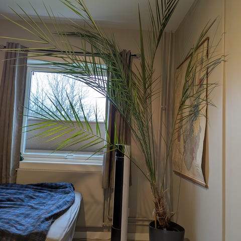 Palmen kommer med potte. Planten er nok ca 2 meter høy. Er en ekstrem fin og stor plante. Er en veldig lettstelt plante