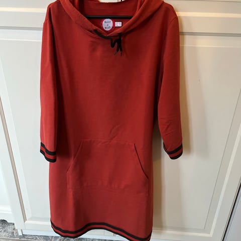 Lengde er 95 cm, 46 cm fra søm til søm under armene/over brystet, og armlengde er 43 cm..