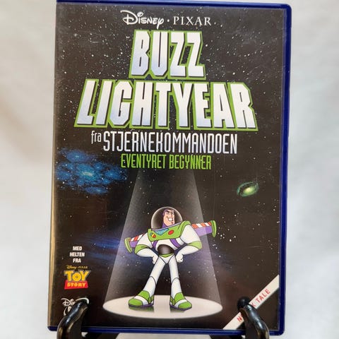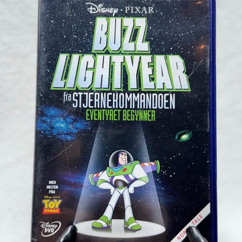 Disney Pixar Buzz Lightyear fra stjernekommandoen VHS-film. Tegnefilm med figuren Buzz Lightyear fra Toy Story-universet. Norsk utgave med tekst og tale tilpasset barn.