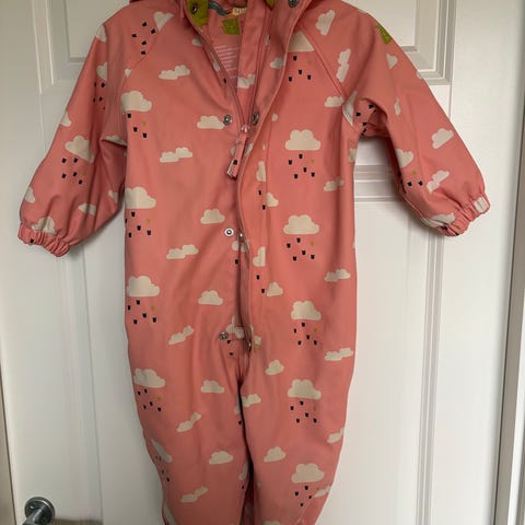 Dressen er i god stand. Trykknapper og knapper mangler. Skrapmerkene mellom bena er tapet/reparert. Alle vises på bildene.