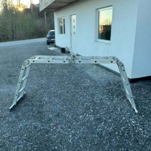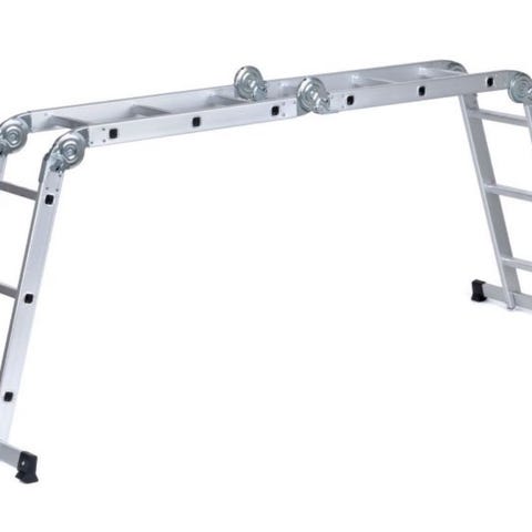 Praktisk stige av aluminium med flere bruksområder. Den kan brukes som arbeidsplattform, vinklet- eller rett stige.