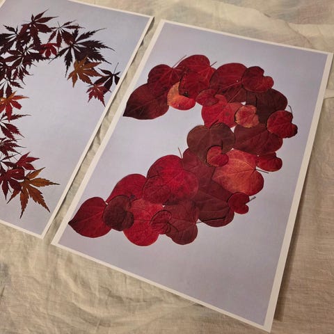 Beutifull little wooden blue frame full of dry pressed ginkgo biloba leaves, one of them is golden 💛
