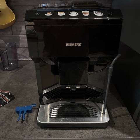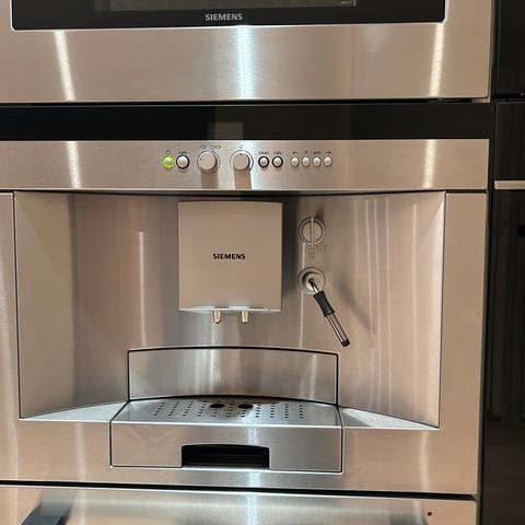 Siemens integrert kaffemaskin. Sveitsiskprodusert kvalitet. Innebygd modell for kjøkkeninnredning. Kan streamer og kan brukes med både bønner og malt kaffe. Er nesten helt sikker på at jeg har bruksanvisningen som da også medfølger.