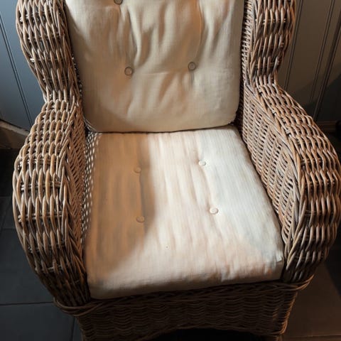 Solid kurvstol selges. Har noen bruksmerker (se bilder). God å sitte i.