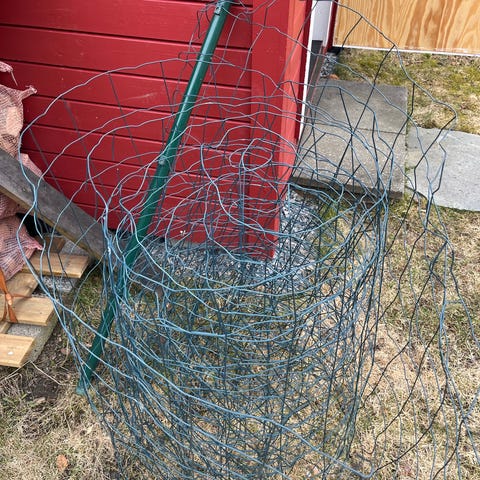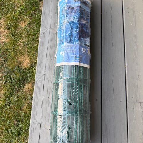 Grønn hagegjerde netting på rull i metall. Nettingen er plastbelagt i grønn farge og leveres som sammenrullet gjerdeelement. Egnet til innhegning i hage, rundt bed, busker eller mindre områder der det er behov for enkel avgrensing. Rullen består av sammenhengende trådnetting med vertikale og horisontale tråder som gir et fleksibelt, men stabilt gjerde. Kan klippes til ønsket lengde og festes til stolper eller andre fester etter behov. Har 6 meter igjen. Helt ny.