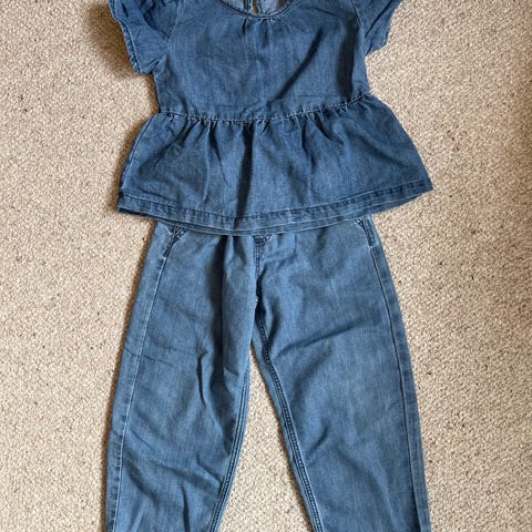 H&M jeans for jente i størrelse 116. Buksene er i denim og kommer i flere farger. Passer til hverdagsbruk og kan kombineres med ulike overdeler. Materialet er denim, som gir et slitesterkt og anvendelig plagg for barn i denne størrelsen.
