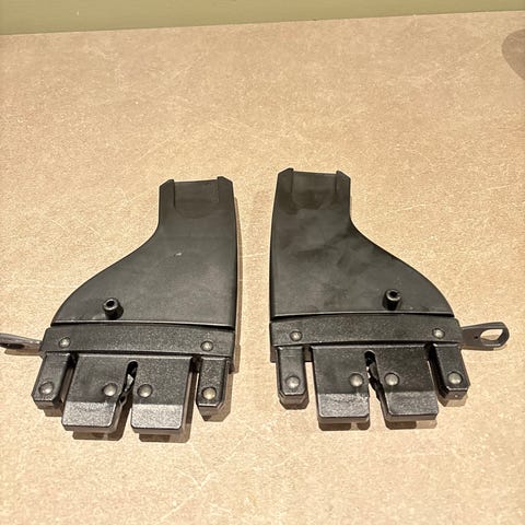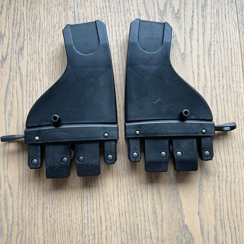 Emmaljunga adapter til barnevogn. Adapterne brukes til å feste kompatibel bilstol eller sete på Emmaljunga-understell. Settet består av to adapterdeler i plast med trykknapper merket «PRESS» for enkel montering og demontering. Passer til utvalgte Emmaljunga-modeller i henhold til produsentens spesifikasjoner på esken og etiketten på adapterne.