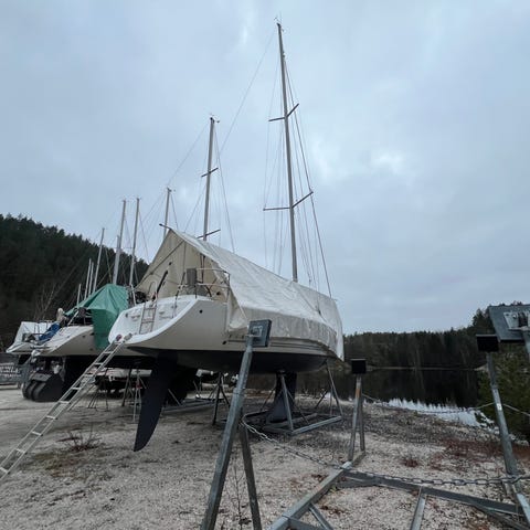 Båtvugge i stål for oppbevaring og transport av seilbåt på land. Vuggen består av en kraftig stålramme med flere støttepunkter og diagonale stag for stabilitet. Egnet for bruk ved vinteropplag eller lengre lagring på land. Kan tilpasses ulike skrogformer ved justering av støttepunktene. Passer for mellomstore seilbåter, som vist på bildene. Egner seg for plassering på fast underlag som grus eller asfalt. Jeg har hatt en 31 fot men ok opptil 42 fot