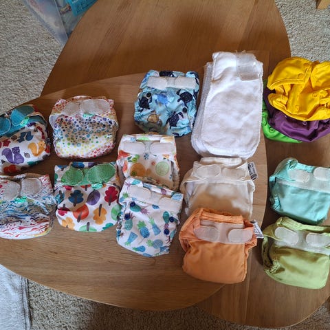 Tøybleier med tilbehør -pent brukt i varierende størrelser