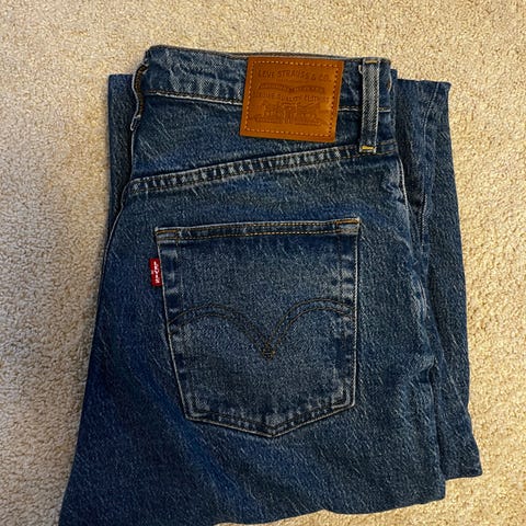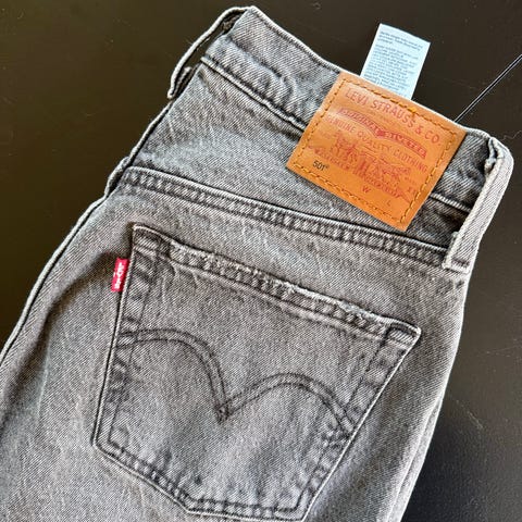 Levi's Premium jeans for dame i grå denim. Buksen har livvidde W28 og lengde L28 ifølge innvendig merkelapp. Klassisk femlommersmodell med baklommer og skinnpatch med Levi Strauss & Co.-logo bak i linningen. Produsert i denim med WaterLess-teknologi, som innebærer redusert vannforbruk i produksjonen. Passer til hverdagsbruk og kan kombineres med ulike topper og sko for både uformelle og mer pyntede antrekk.