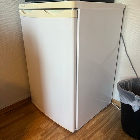 Mindre kjøleskap, Kjekt å ha på hybelen. Hører det overhode ikke. Har en liten fryseskuff øverst. Fungerer fint. Måler 85hx50b.