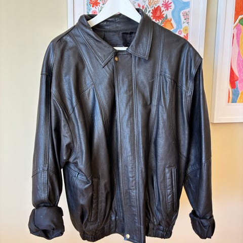 Jakke i ekte skinn, vintagepreget, lett i vekt og myk som en hanske:-)
