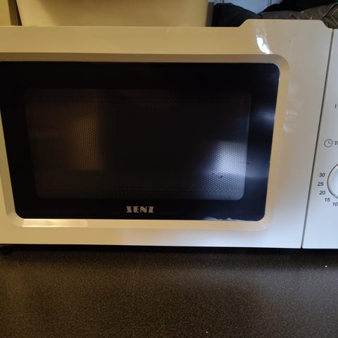 Senz mikrobølgeovn i hvit farge. Frittstående modell. Nærmere tekniske spesifikasjoner følger merkingen på baksiden av apparatet.