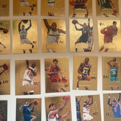 Basketball samlekort med ulike NBA-spillere. Kortene viser spillere i kamp- og aksjonssituasjoner, inkludert flere rookie-kort og kort fra ulike serier. Motivene er i farger med trykk på begge sider. Egner seg for samlere av basketball- og NBA-kort, eller som tillegg til eksisterende samling. Antall og eksakte serier kan telles og spesifiseres av selger ved behov.