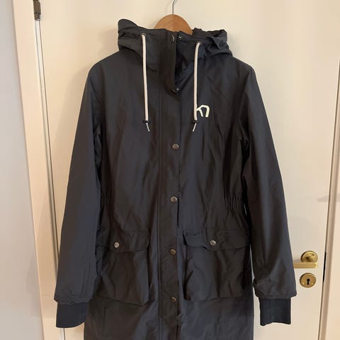 Nydelig blå farge med hette og lengre passform. Fin på våren.
