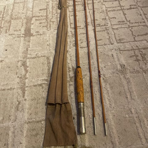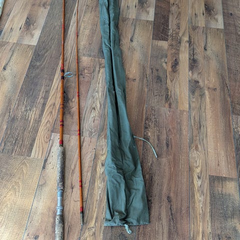 Hørgård laksestang, type: Låke, 9 fot til salgs. Produksjonsnummer 4238. Stangen leveres med originalt stangtrekk.