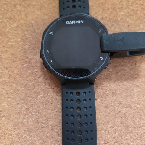 Garmin Forerunner 235 pulsklokke i svart med rund digital skjerm. Leveres med ladekabel med USB-tilkobling. Egnet til bruk ved løping og annen trening der man ønsker registrering av aktivitet og puls.