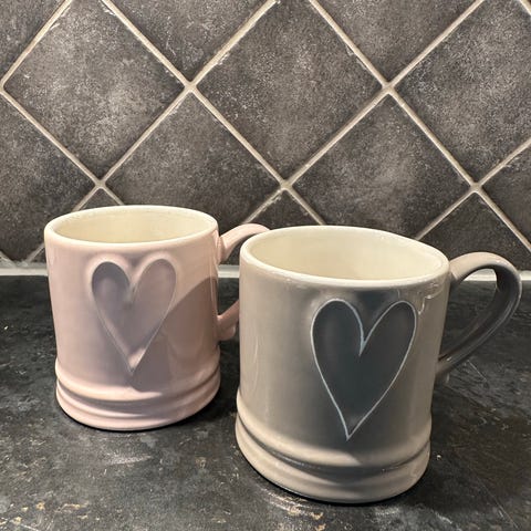 Nydelige krus✨💕 rosa innside og blomstermønster i rosatoner på utsiden. Passer til servering av varme og kalde drikker som kaffe, te eller kakao.