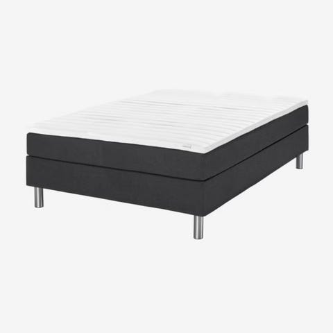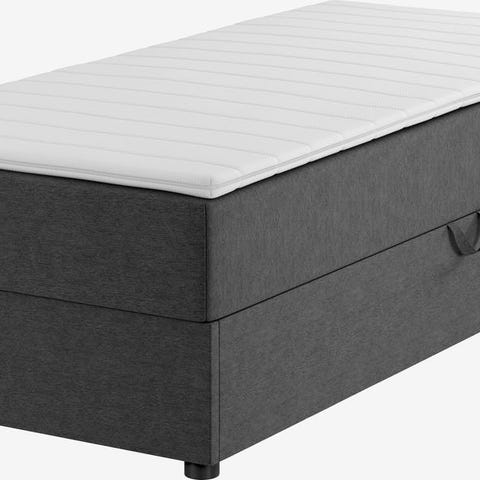 Jysk rammemadrass enkeltseng i mørk grå utførelse med hvit overmadrass. Sengen står på runde metallben som gir god stabilitet og luft under sengen. Passer som enkeltseng på soverom, gjesterom eller hybel.