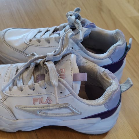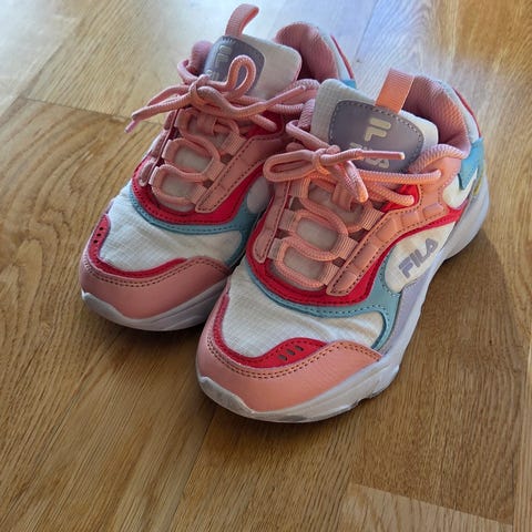 Fila joggesko i kule farger. Skoene har snøring foran og polstret hælkappe for bedre komfort. Overdelen er i tekstil med syntetiske forsterkninger, og yttersålen er i gummi. Størrelse 31. nesten helt ubrukte. Nypris 799